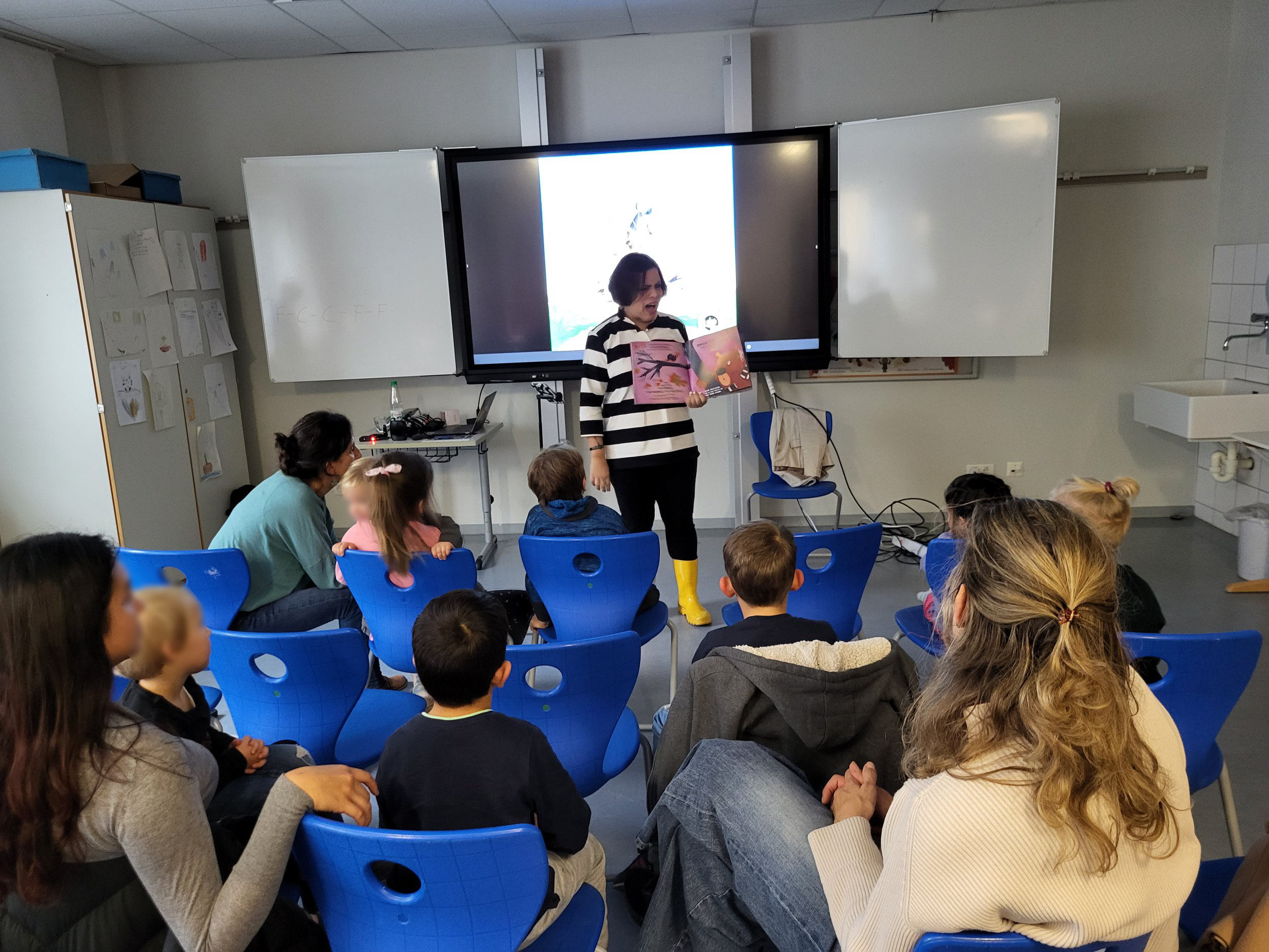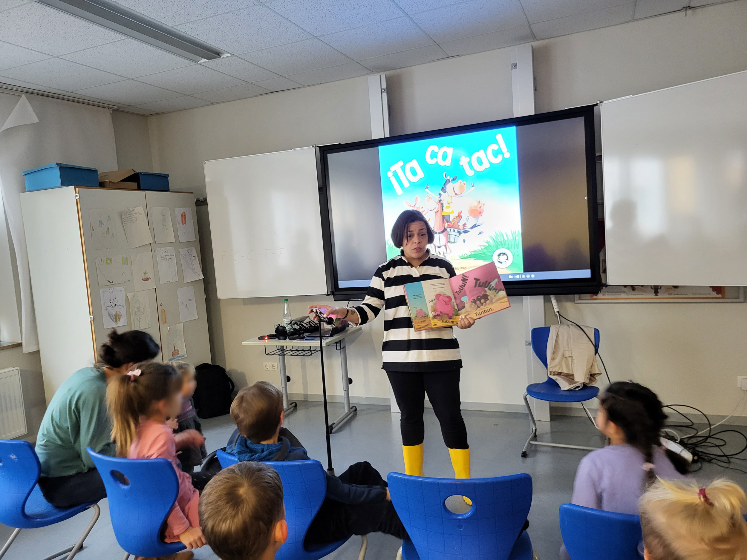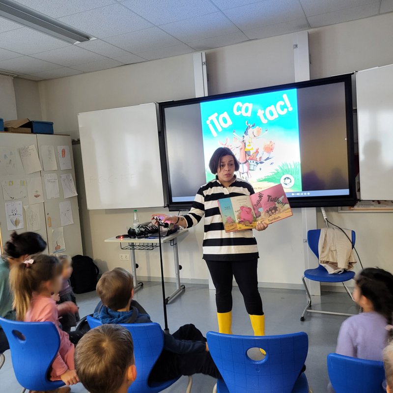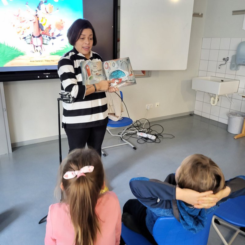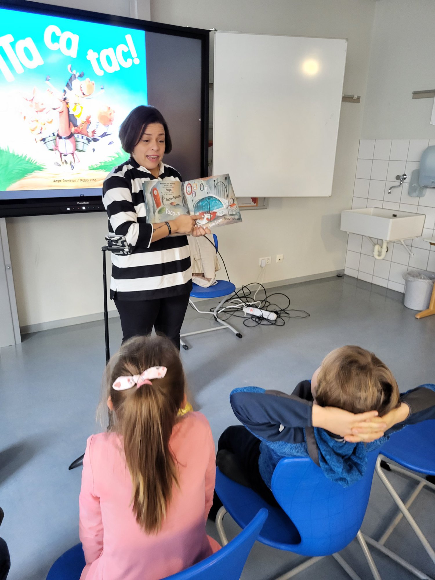 Anyas beeindruckende Fähigkeit, Geschichten mit einem Hauch von Lebendigkeit zu durchdringen und kunstvoll Effekte einzusetzen, verwandelte die Lesung in ein mitreißendes Erlebnis. Die Kinder, ja sogar die Eltern, waren gleichermaßen gefesselt von ihrer Erzählweise. Besonders für diejenigen Kinder, die gerade erst begonnen haben, die spanische Sprache zu entdecken, erwies sich die Interaktion mit Anya als wahrhaft großartig. Gemeinsam wurde gesungen, und die Kinder konnten den Inhalt ihrer Geschichten durch die kunstvollen Illustrationen in den Büchern verfolgen.